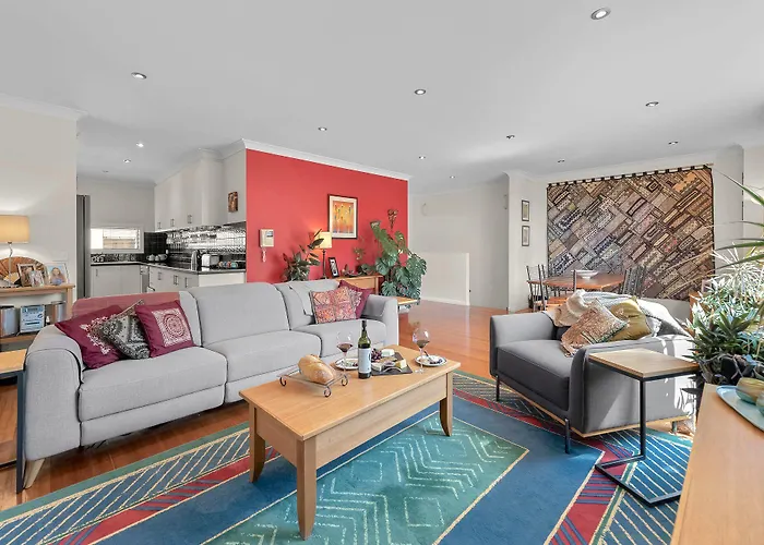 Staycentral - Tranquil Spacious Townhouse villa heeft een ingerichte kitchenette met een koffie/theezetapparaat, een oven en keukengerei op het terrein. De 2-badkamer villa ligt op 7-minuten loopafstand tot East Brunswick Hotel, dat gerechten uit de Australische keuken aanbiedt. Minnie Street/Glenlyon Road bushalte ligt op 300 meter ervandaan, zodat je Melbourne kunt ontdekken.
